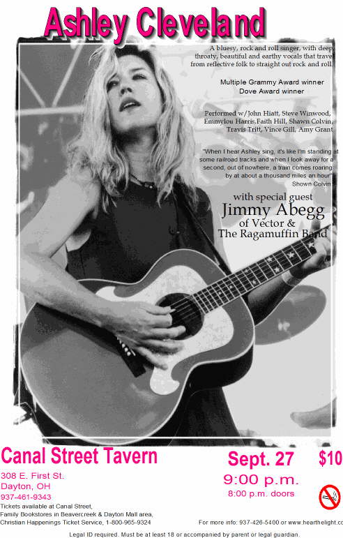 Ashley Cleveland with special guest Jimmy Abegg (Jimmy A of Vector and The Ragamuffin Band ) |
